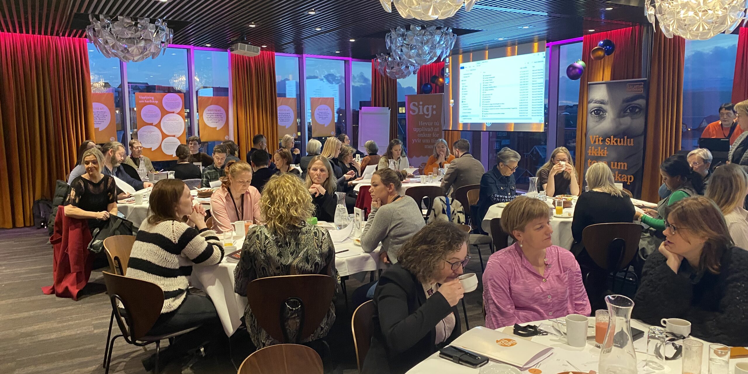 Á skránni vóru fyrst framløgur, við bæði góðari og neyðugari upplýsandi áfylling fyri týðandi økir. Talan var um bæði harðskapsfakið og -økið, um tagnarskyldu, upplýsingar- og fráboðanarskylduna og ikki minst um týdningin av mannagongdum, fyri at samstarvið og vitanarbýtið millum avvarðandi myndugleikar kann koma at rigga.